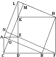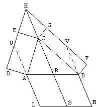 Similarly, the area BC² of the square on side BC equals that of rectangle BMLD. Finally, the two rectangles AELM and BMLD make up the square on the hypotenuse AB.