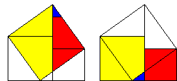 Professor R. Smullyan in his book 5000 B.C. and Other Philosophical Fantasies tells of an experiment he ran in one of his geometry classes. He drew a right triangle on the board with squares on the hypotenuse and legs and observed the fact the the square on the hypotenuse had a larger area than either of the other two squares. Then he asked, "Suppose these three squares were made of beaten gold, and you were offered either the one large square or the two small squares. Which would you choose?" Interestingly enough, about half the class opted for the one large square and half for the two small squares. Both groups were equally amazed when told that it would make no difference.